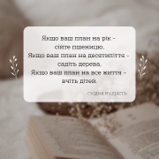Якщо ваш план на рік – сійте пшеницю. Якщо ваш план на десятиліття – садіть дерева Якщо ваш план на все життя – вчіть дітей. Східна мудрість